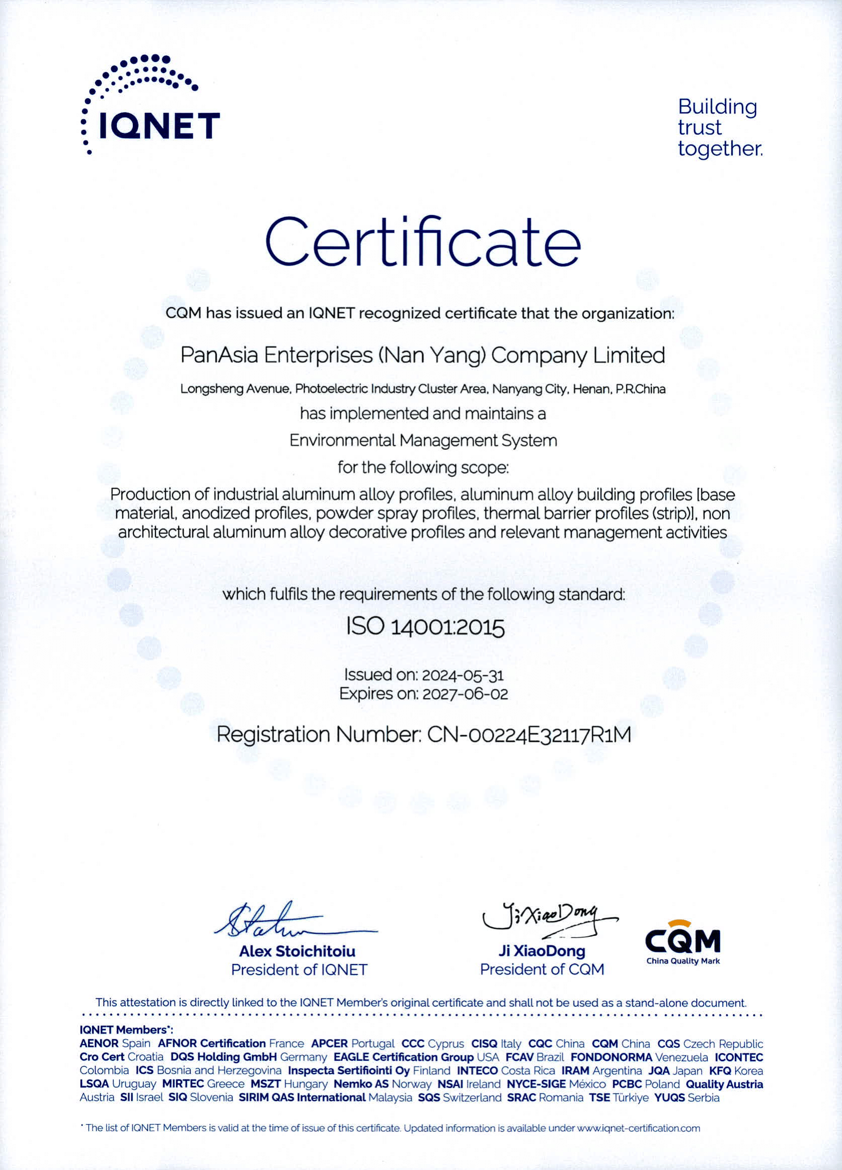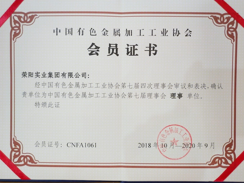 China Nonferrous Metal Industry Association – Membership Certificate