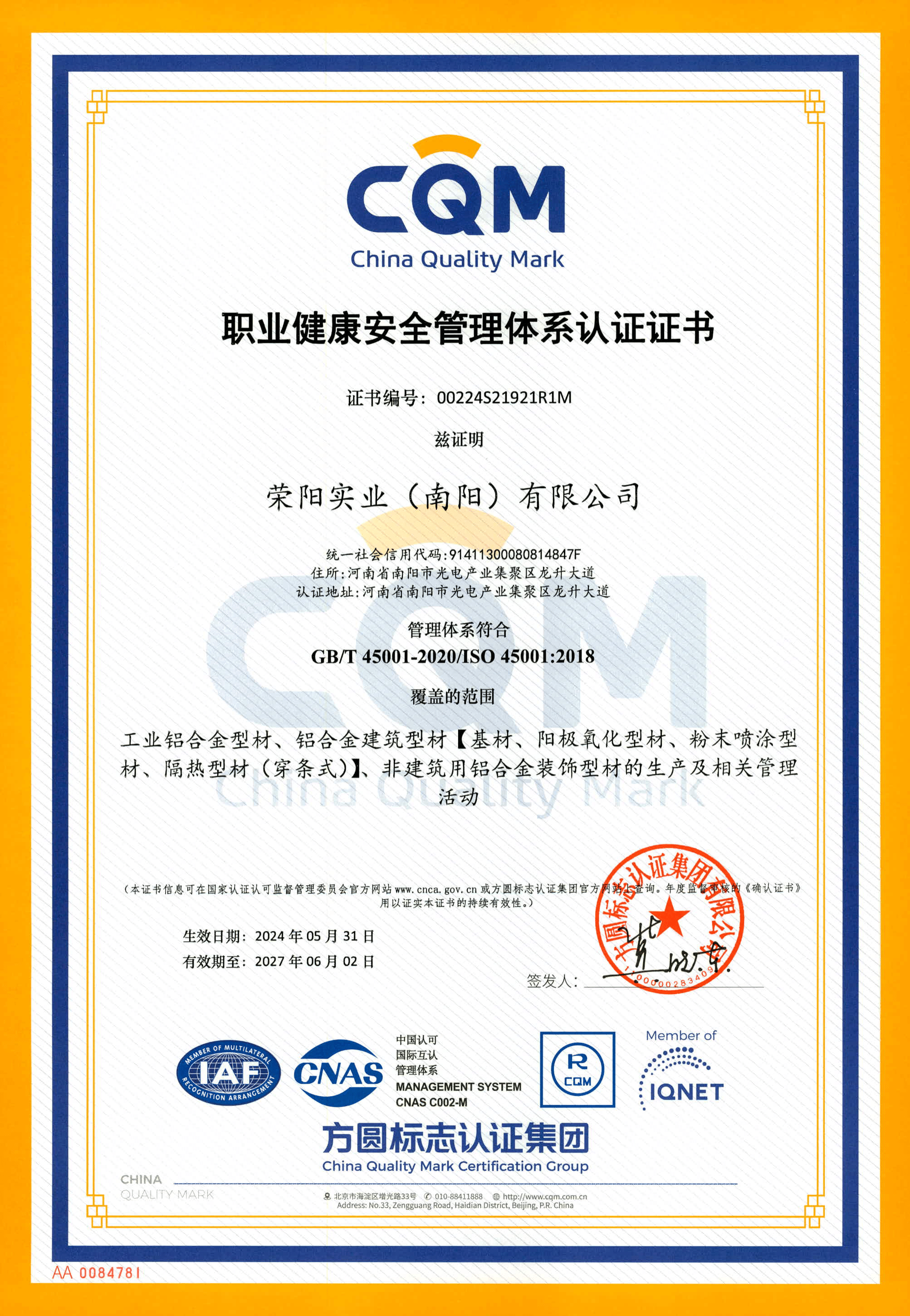 CQM Quality Environmental Occupational Health and Safety Management System Certification