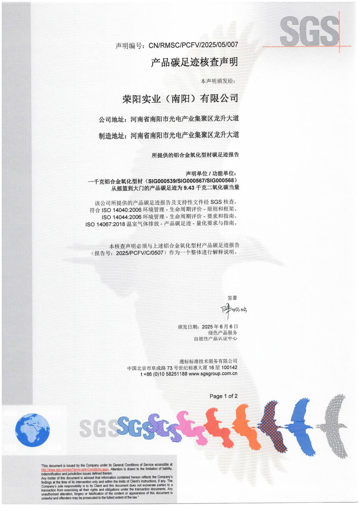 SGS Product Carbon Footprint Certification